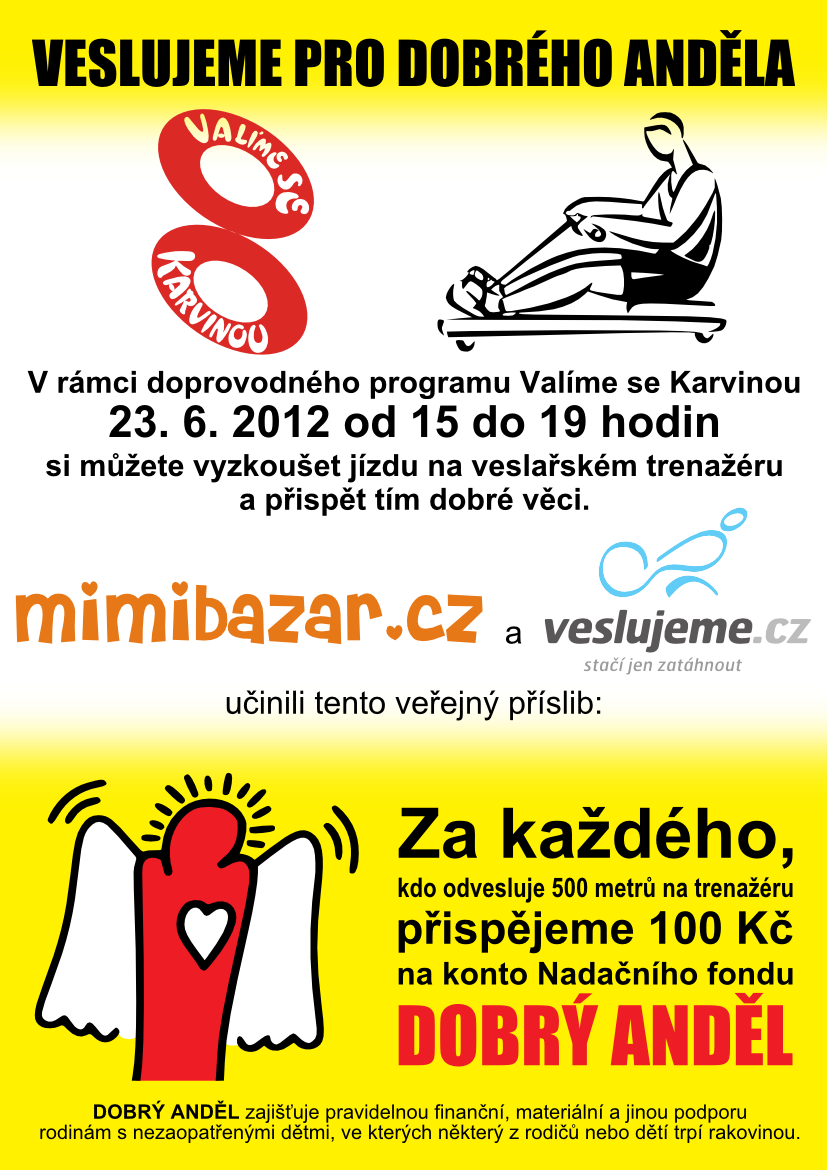 18.6.2012, Andělský blogMilí Dobří andělé a přátelé Dobrého anděla, rádi bychom Vás jménem jednoho z vás – Dobrého anděla pana Bohdana Škody, pozvali na akci Valíme se Karvinou- v Karviné, v sobotu 23.6. od 15 hodin na Masarykově náměstí. Ať už jste Dobrý anděl, nebo o tom teprve přemýšlíte můžete i tímto způsobem pomoci rodinám s dětmi, které se kvůli rakovině dostali do finanční tísně a zároveň udělat něco pro své zdraví.