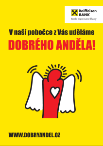 31.5.2013, Andělský blogNadační fond DOBRÝ ANDĚL udělal další krok ve spolupráci s dlouhodobým partnerem Raiffeisenbank a.s. Od 27. května 2013 se můžete stát Dobrým andělem i ve Vaší pobočce Raiffeisenbank a v Centrech hypoték Raiffeisenbank. Tato místa jsou označená nálepkou: „ V naší pobočce z Vás uděláme DOBRÉHO ANDĚLA!“. Osobní bankéři pomohou zájemcům s vyplněním trvalého příkazu - jehož prostřednictvím můžete zasílat příspěvky na pomoc rodinám s dětmi, které se vlivem vážného onemocnění dostaly do finanční tísně. S Raiffeisenbank spolupracuje náš nadační fond již od založení, společnost nás aktivně podporuje a řada zaměstnanců Raiffeisenbank se již Dobrým andělem stala. Našemu partnerovi DĚKUJEME!
