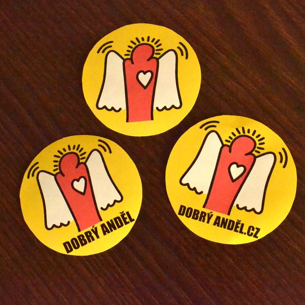 Samolepky „Zde bydlí Dobrý anděl“ a „Anděl v autě“ Vám rádi pošleme – stačí nám poslat nadepsanou a ofrankovanou obálku na naši adresu (Švédská 6, 150 00 Praha 5).