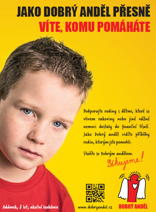7.10.2015, Andělský blog, Příběhy, RozhovoryPaní Hana žije se svým manželem a dětmi Adámkem (8) a Nikolou (16) v Pátku u Poděbrad. Dobří andělé jim pomáhají již dva roky. Od února tohoto roku můžete Adámka vidět na plakátech Dobrého anděla v některých městech.