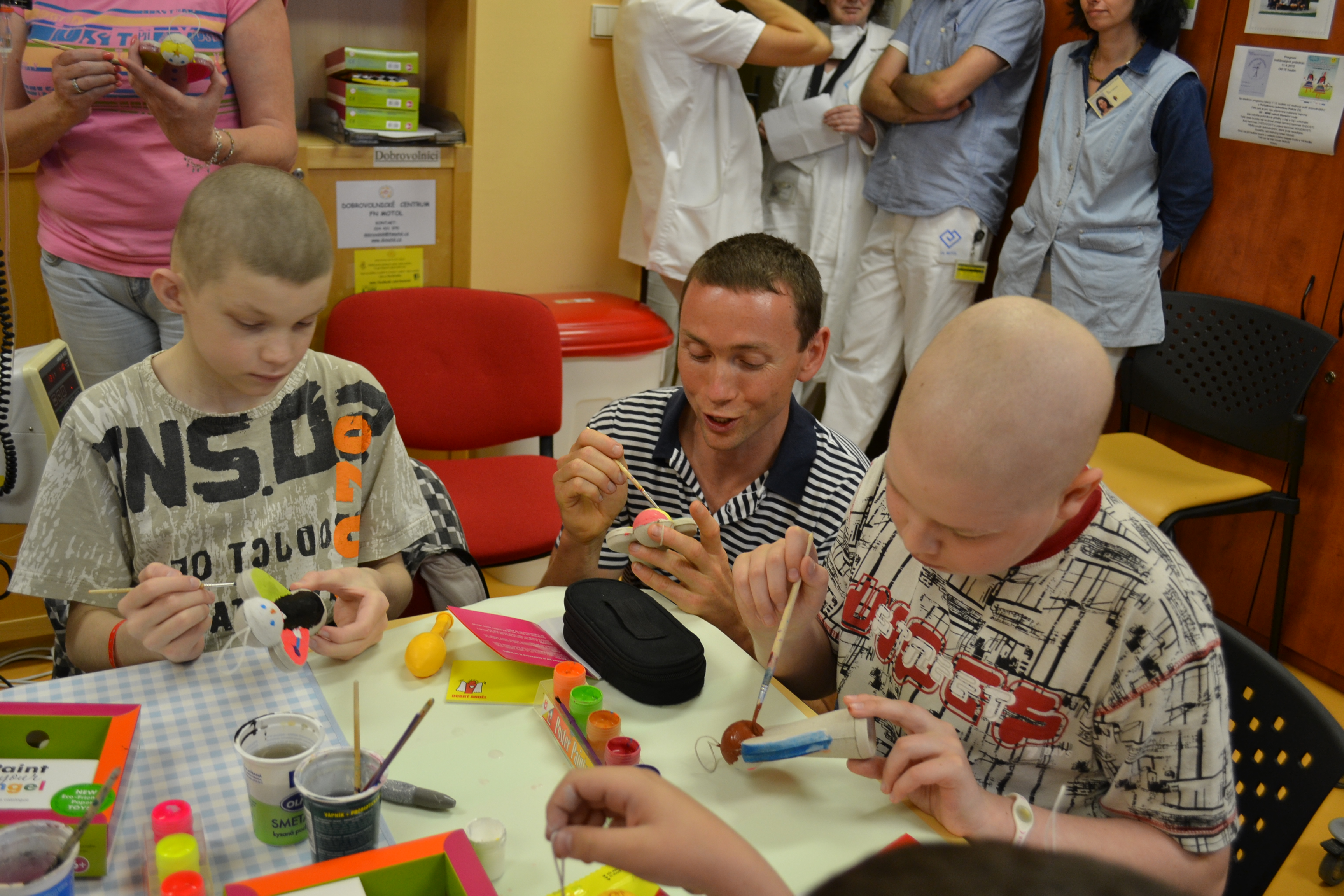 Petr Sýkora s dětmi, kterým pomáhají Dobří andělé, FN Motol