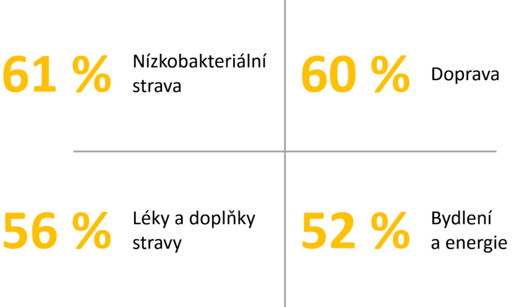 Téměř dvě třetiny rodin pokládají za finančně nejnáročnější položku léčby úhradu nízkobakteriální stravy. V rámci této diety, ordinované prakticky u všech onkologických onemocnění, jsou pacientovi podávány co nejkvalitnější potraviny, které musí být vždy čerstvé, nesmí být nijak ohřívány ani dlouhodobě skladovány. Mnoho potravin tedy přijde na zmar.