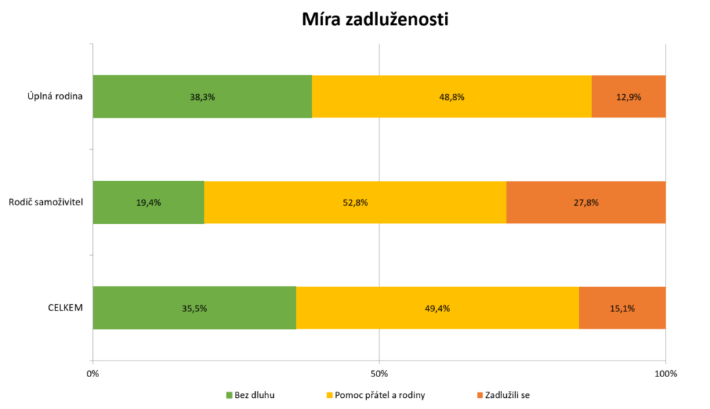 Stanovením diagnózy se rodině zcela mění život. V prvním roce léčby doprovází 89 % rodičů své dítě v nemocnici. S tím se pojí téměř okamžité přerušení zaměstnání a pokles příjmů. Průměrně domácnost během léčby přichází o 8 600 Kč měsíčně a navíc se objevují nové výdaje související s léčbou. Ty se pohybují ve výši 6 395 Kč měsíčně. Rodina se tak téměř ze dne na den ocitne ve složité finanční situaci. Částečně pomáhají příspěvky od státu a neziskových organizací, léčba i rekonvalescence je však nákladná a rodiny mnohdy potřebují více prostředků. 61,7 % rodin uvedlo, že by se neobešlo bez pomoci příbuzných, přátel nebo neziskových organizací, případně zadlužení. U rodičů samoživitelů je situace výrazně horší. Bez cizí finanční pomoci by se v této skupině neobešlo 80,6 % domácností a téměř třetina z nich se musela dlouhodobě zadlužit.