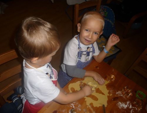 Uvědomuji si, jaké máme štěstí, že jsme zase všichni společně doma. Vojtíšek má dobrou náladu a hodně síly. Člověk by vůbec neřekl, že je v intenzivní fázi léčby. Doma ho musíme pomalu krotit, protože by nejraději běhal, skákal a dělal blbinky. I Ondrášek je štěstím bez sebe. Samozřejmě se kluci celkem často poperou, ale dáváme pozor, aby si neublížili. Vzhledem k tomu, že se blíží Vánoce, máme doma plno práce. Společně s klukama pečeme cukroví, které však mizí ihned po vytažení z trouby.