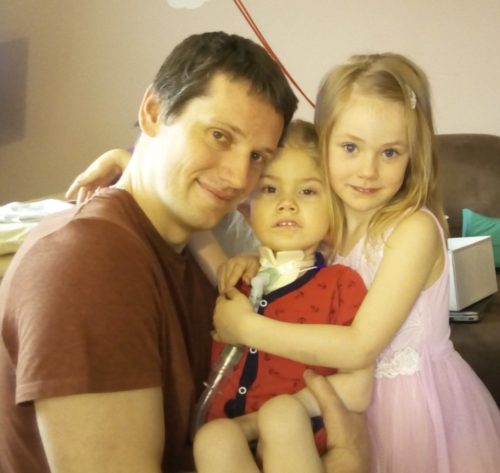 9.10.2018, Andělský blog, PříběhyManželé Veronika a Roman společně pečují o 3 děti. Prostřední dcera, nyní tříletá Petruška, na svět přišla komplikovaným porodem, ze kterého si odnesla trvalé následky do konce života. „Péťa má tracheostomii, je doživotně závislá na umělé plicní ventilaci. Z neurologického pohledu má stacionární kvadruparézu, což je postižení všech končetin. Navíc není schopna pohybu ani hlavičkou, řeči a příjmu jídla, výživu dostává pomocí hadičky přímo do bříška. Protože již lékaři vyčerpali všechny dostupné možnosti, jak jí pomoci, a neočekávají žádný zásadní vývoj stavu, požádali jsme o převzetí Péti do domácí péče. Podařilo se nám to po devíti měsících, do té doby jsme se s manželkou střídali v nemocnici. Starší dcera, pětiletá Nikolka, celou situaci nesla statečně, ale na druhou stranu fakt, že trávíme hodně času v nemocnici, pro ni nebyl určitě nic přínosného,“ vypráví pan Roman a dodává: „Manželka je povoláním zdravotní sestra, celá situace tak pro nás byla jednoduší – ona dělala potřebné zdravotní úkony od začátku přirozeně, já se vše postupně učil.“ U Petrušky musí být jeden z rodičů vždy přítomen ve dne i v noci.