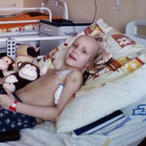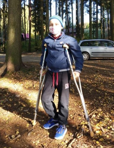 Ewingův sarkom – zhoubný nádor stehenní kosti – byl Jarouškovi diagnostikován loni v lednu. Léčba byla zahájena ihned. Nejprve probíhala chemoterapie, na niž po 6 měsících navázala velmi náročná operace. “Kousek nad kolenem mu byla vyoperována celá stehenní kost, která je včetně kyčelního kloubu nahrazena endoprotézou,“ vysvětluje pan Jan. „Operace byla úspěšná, ale zkomplikovala ji infekce. Měli jsme velké obavy, aby syn o nepřišel o celou nohu. Naštěstí dopadlo vše dobře a Jaroušek mohl začít rehabilitovat.”