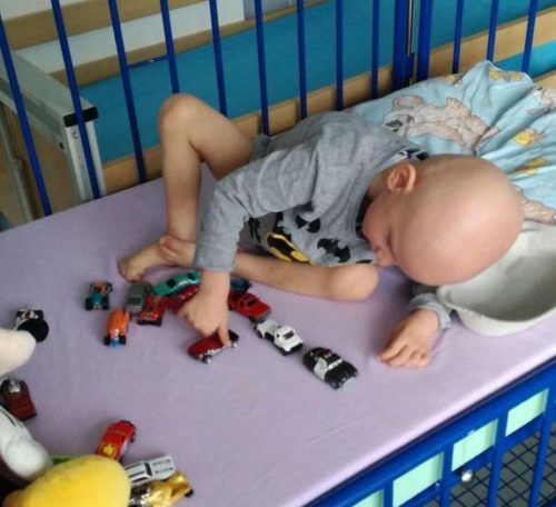 Rudův nádor byl neoperovatelný, proto bylo nutné nasadit nejprve chemoterapie, jejichž cílem bylo nádor zmenšit. „Začátek léčby byl pro nás všechny těžký, nečekali jsme takový průběh. Rudánek s tatínkem strávil 5 týdnů na oddělení JIP. Mně bylo umožněno, díky Nadačnímu fondu dětské onkologie Krtek, přespávat na ubytovně naproti nemocnici. Jelikož jsem již byla téměř před porodem, spánek mezi všemi těmi pípajícími přístroji na JIP byl pro mě téměř nemožný. Vážím si toho, že jsme v tomto těžkém období mohli zůstat spolu,“ říká s vděčností paní Veronika. „Propuštění domů po měsíci a půl bylo dojemné, krásné. Rudánek ožil hned, jakmile viděl auta a šaliny, cesta domů po dálnici byla plná jeho nadšených výkřiků.“