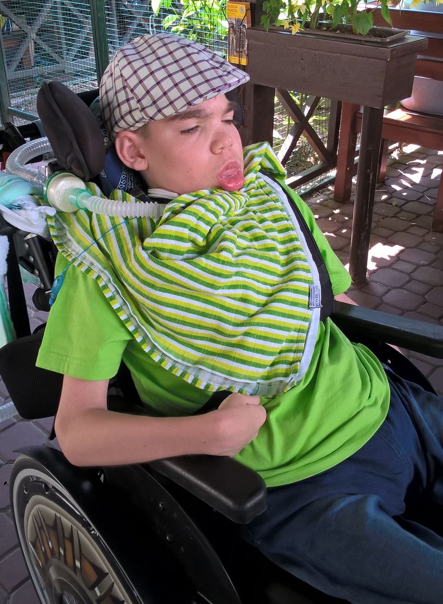 Nyní potřebuje 24hodinovou péči. Je odkázán na umělou plicní ventilaci, má zaveden PEG (sondu) do žaludku, tj. je krmen výživou. Několikrát denně mu musíme odsávat tracheostomii, skrze niž dýchá. Je plně na plenách. Může být pouze na polohovacím invalidním vozíku nebo lůžku. Každý den cvičíme, abychom jeho stav udrželi aspoň tak, jak je teď, protože víme, že zlepšení nebude. Sám se nepřetočí, musí se polohovat, aby se předešlo dekubitům. Hlídat čas, kdy má jíst, kdy pít. Člověk musí být neustále ve střehu, jestli něco nepípá, jestli to „správně syčí“. Jeho pokoj nevypadá jako teenagerovský, ale jako JIP v nemocnici.