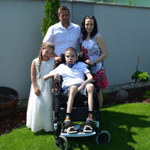 Když jsme se dozvěděli Viktorovu diagnózu, byly mu tři roky. Tehdy jsme bydleli u mých rodičů v půdní vestavbě. Jelikož jsme věděli, že skončí na invalidním vozíku, rozhodli jsme se, že si postavíme bezbariérový dům. Manžel je zedník, tak o to jsme to měli jednodušší. Letos to bude devět let, co bydlíme v přízemním domě se širokými dveřmi a máme to tu přizpůsobeno našim potřebám.