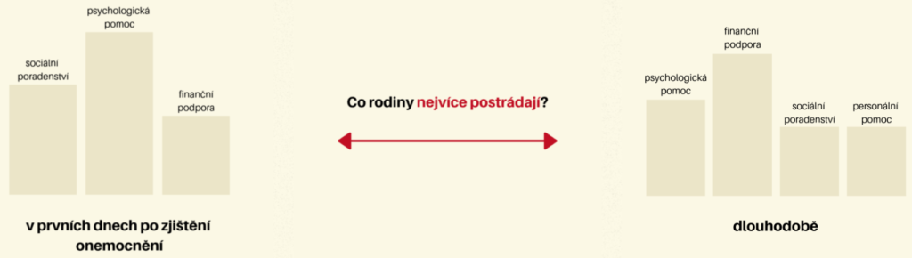 Po vyslechnutí takto vážné diagnózy se často rodině převrátí svět vzhůru nohama. Neví, co bude dál, jak bude nyní vypadat jejich běžný život, jejich děti často čekají další lékařská vyšetření či dlouhodobé pobyty na rehabilitacích. Mnohdy si musí sami nastudovat o daném onemocnění další informace. I proto v tuto chvíli nejčastěji potřebují psychologickou pomoc a sociální poradenství, tj. někoho, kdo jim pomůže se se vším vyrovnat a překonat nové překážky.