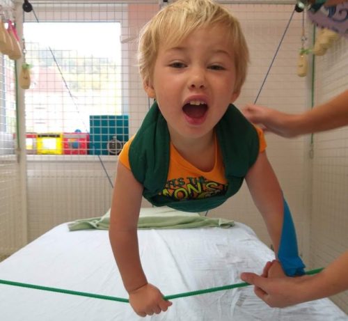 Po propuštění z JIP jsme téměř měsíc leželi na dětské neurologii. Naším velikým úkolem bylo rehabilitovat. Už na JIP za námi chodila rehabilitační sestra, od začátku jsme makali a to nám vydrželo i později doma. Týnek každé cvičení strašně okřičel. Nyní už si zvykl a je to v tomto směru lepší.