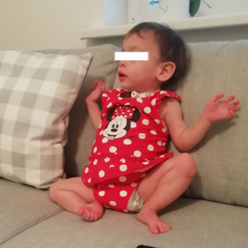 K její metabolické vadě patří vysoká unavenost, takže spinká průměrně 17 hodin denně, tím pádem nám nezbývá mnoho času. Čas musím rozdělit mezi ošetřovatelskou péči, nácvik nových dovedností, včetně jemné motoriky, lokomoce a „dětství“ - tedy šťastnou hru a poznávání toho všeho, co doposud neměla možnost poznat. Počínaje trávou venku a konče například rozkrojenou okurkou.