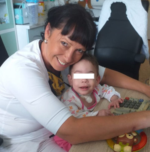Na péči o holčičku se, dle svých možností, zcela nezištně a s obrovskou láskou podílejí dvě sestřičky z mého oddělení a chůva. Také jedna speciální pedagožka, jež má zkušenosti s péčí o děti s tracheostomií. Snažím se, aby má veškerá péče byla trpělivě laskavá, aby „škola“ V. probíhala hrou, a aby každou minutou cítila lásku pečující osoby, což jsou pocity, kterých si ve svém životě užila zatím pramálo. V. není dítě právně volné, takže do mého života patří i komunikace s její biologickou maminkou.