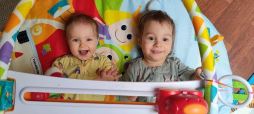 Je to jedna velká jízda. Ale Klárka je už teď malý velký pomocník. Lákáme s ní Nikolku k plazení po bytě. Když se Nikolka probudí s chmurnou náladou, stačí pohled na Klárku a je veselo. Kromě toho si užíváme tu radost, když se dítko vyvíjí zdravě, samo a bez každodenního pláče u Vojtovky.