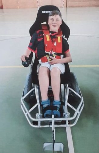 Další aktivitou, kterou Patrik miluje, je powerchair hockey (pozn. DA – powerchair hockey je jediný akční kolektivní sport určený pro lidi s největším pohybovým omezením, který se dá v ČR hrát na elektrickém vozíku). Povedlo se nám sehnat peníze a pořídit mu speciální vozík na tento sport, který si nadevše zamiloval.