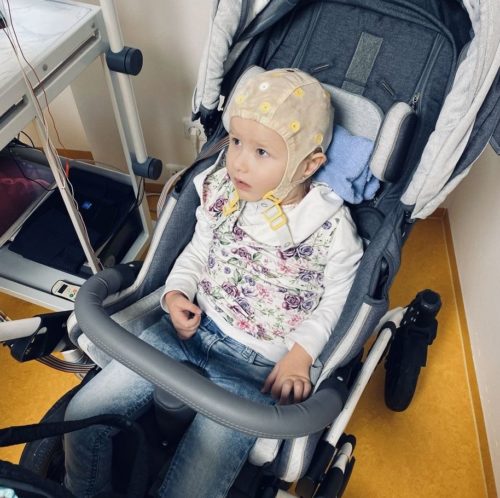 Po čtyřech měsících usilovného cvičení Vojtovy metody se nám Káju poprvé podařilo dostat na bříško. Kýžený výsledek ale bohužel brzy poté zmizel jako pára nad hrncem. Dlouho jsme si lámali hlavu, čím jsou Kájiny opakované regresy způsobovány. Věděli jsme, že budou nejspíš důsledkem Kájiny diagnózy. Zkompletování odpovědi se nám dostalo v jejích 2,5 letech, kdy prodělala několik velkých epileptických záchvatů.