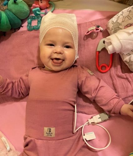 Motorický vývoj u Rozárky neodpovídá věku, v 9 měsících zatím pouze leží, zvládá se otočit na bok a pohybovat ručičkami a nožičkami. V důsledku nasazené léčby zatím nemůže rehabilitovat. Každých čtrnáct dní nyní Rozárka dojíždí na enzymoterapii. „Za normálních okolností by infuze měla kapat čtyři až pět hodin, dcera ale při druhé aplikaci prodělala alergickou reakci, a tak byl interval raději prodloužen na dvanáct hodin. V nemocnici tedy vždy zůstáváme i přes noc,“ vysvětluje paní Veronika.