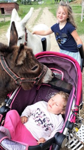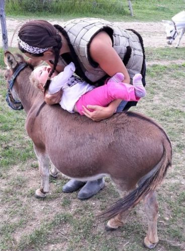 Loni o prázdninách jsem díky Vám mohla absolvovat intenzivní asinoterapii. Že nevíte, o co se jedná? Je to nový druh animoterapie, při níž dochází ke kontaktu s miniaturními středozemními oslíky. V průběhu 17 dní jsem za nimi docházela 2x denně. Kvůli své oční vadě jsem je příliš neviděla, ale v jejich přítomnosti jsem cítila obrovský klid a vyrovnanost, které na mne působily blahodárně. Mé epileptické záchvaty byly méně časté a trvaly kratší dobu. Uvolnění bylo znatelné i na mých chodidlech – palec, který mám neustále křečovitě zaťatý, se narovnal. Oslíky jsem mohla hladit po celém těle a při hlazení hřívy, které mi bylo moc příjemné, se mi podařilo rozevřít dlaň ze spastického sevření. Zlepšila se mi tak hybnost rukou a jak je známo, s rozvojem jemné motoriky souvisí i vývoj řeči. Již v průběhu terapie jsem si začala více broukat a rodiče mají nyní radost, že „jsem slyšet“. Na oslíky jsem si mohla i lehnout, díky čemuž se mi dařilo upevňovat držení rovnováhy.