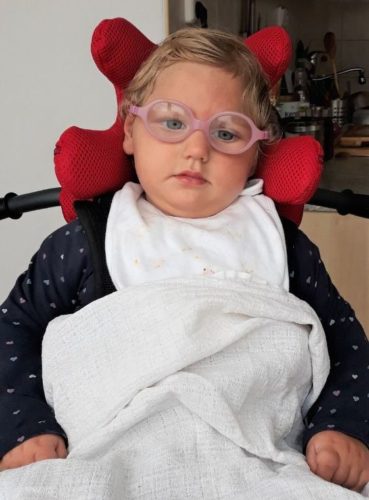 Můj psychomotorický vývoj je zastavený. Přestože mi jsou dva roky, vývojově odpovídám novorozeněti - pouze ležím, nepřetáčím se, nelezu ani dopředu, ani dozadu, nesedím ani nechodím. Neurologickému nálezu dominuje kvadruspasticita (postižení všech končetin) s hypotonií – v ručičkách dlouho neudržím žádnou hračku, trup mám nezpevněný, povolený, nožičky mám křížem a pořád v křeči (spastické). Nenavazuji sociální, ani oční kontakt, hračky mne vizuálně nezajímají a nereaguji na zavolání svého jména. Naopak dobře slyším, a tak mne zajímají různé zvuky – hlavně cinkání, milá slova a příjemná muzika. Své nejbližší vnímám především dotyky a tak si nechávám líbit masírování, pusinkování na tvářičky, hlazení po bříšku a šimrání vlásky mou starší sestrou.