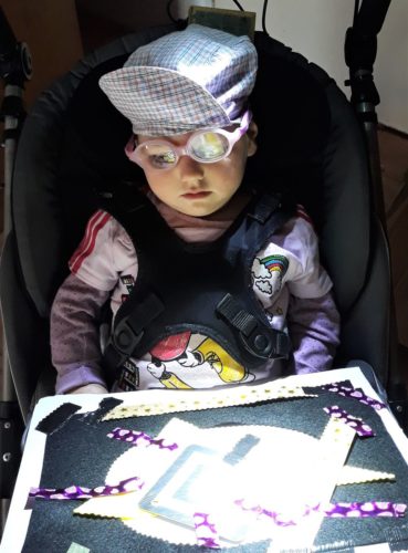 Na konci loňského května jsem podstoupila funkční vyšetření zraku. Nejenom, že mám 9 dioptrií na blízko, ale jsem schopna zaměřit se po krátkou dobu pouze na velmi podsvícené věci, obrázky. Dobře zachytím i blýskající se a pohybující se hračky. Ostatní věci nevidím. Z příspěvku Dobrých andělů mi mamka proto pořídila LED panel, kterým podsvěcuje obrázky a různé hračky a já je vidím! Děkujeme Vám!