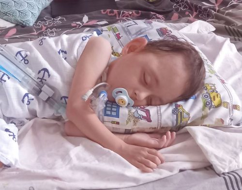 Péče o syna je náročná, příspěvky od Dobrých andělů nám ale velmi pomáhají se zajištěním všeho potřebného – kupujeme z nich například speciální kosmetiku pro atopiky, sterilní materiál na převazy tracheostomické kanyly, injekční stříkačky, které jsou nutné na krmení pomocí sondy a další nezbytnosti.