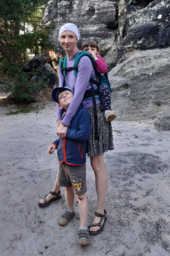 „V lednu 2022, v době, kdy jsem ještě stále kojila Klárku, jsem si našla bulku v prsu. Byla jsem přesvědčená, že se jedná o změny mléčné žlázy při kojení. Bohužel vyšetření odhalilo karcinom prsu,“ začíná své vyprávění paní Jitka. Ihned začala s léčbou. Od ledna do července loňského roku podstupovala chemoterapie, jejichž náročnost byla zkomplikována covidovou pandemií. I přesto zůstala aktivní, jak sama popisuje: „Jako praktická lékařka jsem jednou týdně chodila sloužit večerní pohotovost i při chemoterapiích. Naštěstí jsem je snášela celkem dobře – nebo jsem si tu náročnost s dětmi a každodenním kolotočem ani nepřipouštěla.“