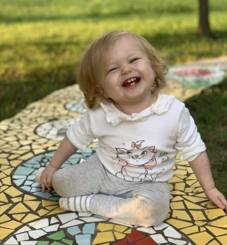 Přijde nám, že je jí líto, když vidí ostatní děti chodit, běhat a jezdit na kolech. Nejspíš by ráda běžela po trávě a sama si z blízka prohlížela kytičky, všemožné kamínky a broučky. Na dětském hřišti se jí snažíme vynahradit omezený pohyb tím, že s ní jezdíme po skluzavkách, houpeme se a někdy i lozíme po čtyřech, aby v tom „nebyla sama“. Pohled na ostatní děti ji ale motivuje, vždy se snaží předvést maximum, co v dané chvíli dokáže.