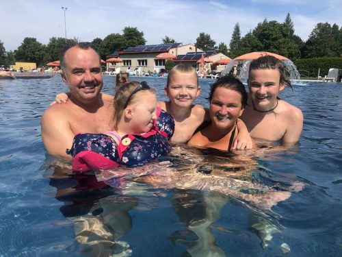 My ani Barunka to však nevzdáváme! Díky pravidelné lázeňské péči se jí podařilo posílit trup, ruce i nohy a už pro ni není problém překonat menší vzdálenost po čtyřech. Ráda si hraje v sedě se svými oblíbenými hračkami a nedávno začala svépomocí ovládat invalidní vozík, což se jí moc líbí. Mezi její záliby patří plavání, které zvládá s pomocí nafukovacích rukávků. Obzvláště šťastná je v přítomnosti zvířat. Jednou týdně proto jezdíme za koníky na hippoterapii. Rozhodli jsme se jí také pořídit fenku Vinnie, která se hned stala jejím věrným přítelem. V roce 2019 jsme si pak nechali jedno ze štěňátek, které se Vinni narodilo, a do rodiny přibyla Naty.