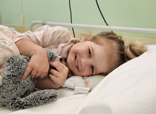 Samotné balení a dvoudenní přesun autem do Velké Británie až tak náročné nejsou. Pobyty v nemocnici Kirka zvládla opravdu skvěle, ale velkou roli v tom určitě hrál personál a zázemí. Už jen fakt, že dcera může nastoupit k hospitalizaci až v den operace, určitě pomáhá vyvarovat se delší době nervozity a stresu před zákrokem. S dcerou jsem vždy mohla jít až k sálu, uspali mi ji v náručí a po operaci se probrala po několika hodinách také za naší přítomnosti. Obdobně jako u nás není v Británii možné na JIP spát, ale je možné být s dítětem vzhůru i přes noc. O dceru i o nás se starali opravdu hezky a cítili jsme se velmi dobře. Náladu Kirce zpříjemňovala třeba návštěva terapeutických psů přímo na JIP. Problém nebyl ani v komunikaci. Některé sestry se snažily naučit i pár slov česky, aby jim Kirka rozuměla.