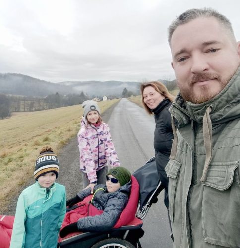 Jsme rodiči tří dětí – nejstarší je třináctiletá Nelinka, prostřední jedenáctiletý Jiřík a nejmladší benjamínek, sedmiletý Matyášek. Jiřík se nám narodil v říjnu 2012 a až do jeho sedmi měsíců jsme byli šťastní a neměli žádné větší problémy. Pak se u něj ale začaly projevovat první problémy v podobě epileptických záchvatů. Spouštěly se například prudkým světlem, kvůli různým infektům s horečkou, ze strachu, ale i z radosti. Začali jsme proto navštěvovat neurologickou ambulanci Dětské kliniky ve Fakultní nemocnici v Olomouci.