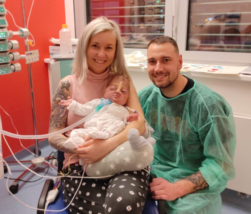 Dnes dvouletý Emilek musel hned po narození bojovat o život. V prvních dnech a týdnech po porodu absolvoval několik těžkých operací a nevyhnuly se mu ani komplikace, včetně otravy krve. On to ale nevzdal. Jakmile už nemusel být v inkubátoru a mohl být v intenzivnějším kontaktu se svou maminkou, začal o to víc bojovat. „V nemocnici jsme nakonec strávili 8 měsíců. Emilek přišel na svět náhle, když jsme byli s partnerem na výletě ve Zlíně. Tam jsem s ním 3 měsíce zůstala a každý den za ním docházela k inkubátoru, kde jsem trávila téměř celý den až do noci,“ vzpomíná na psychicky náročné období jeho maminka Leona. Těžké pro ni bylo nejen se vyrovnat se závažnou diagnózou syna, ale také odloučení od manžela a rodiny, jejichž podporu právě v tomto období potřebovala. „Manžel chodil do práce, ale dojížděl za námi z Prahy každý víkend. V prvních měsících nám lékaři dávkovali informace o Emilkově zdravotním stavu po troškách, protože kdyby mi to řekli najednou, tak bych to asi psychicky nezvládla. Po té nás přivezli do Fakultní nemocnice Motol, kde byl Emilek hospitalizovaný ještě dalších 5 měsíců,“ dodává.