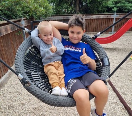 Všichni jsme nesmírně rádi, že to Kubík nevzdal a stále bojuje dál, a to i přes to, že ne vždy se mu povinná cvičení líbí. Ale jinak je to většinu času veselý a vysmátý chlapeček, který pořád vymýšlí nějaké lumpárny. Věříme, že jeho největším přáním je naučit se samostatně chodit, aby si mohl se svým starším bráškou zahrát fotbal. K tomu by mu měly pomoci i ortézky na nožičky, které nosí od začátku roku. My, rodiče, si samozřejmě moc přejeme, abychom od něj někdy slyšeli, jak na nás volá „mámo a táto“, ale věříme, že se dočkáme. Tak nám a Kubíkovi držte palce, před námi jsou další veliké cíle! A my věříme, že je společně zvládneme :-)