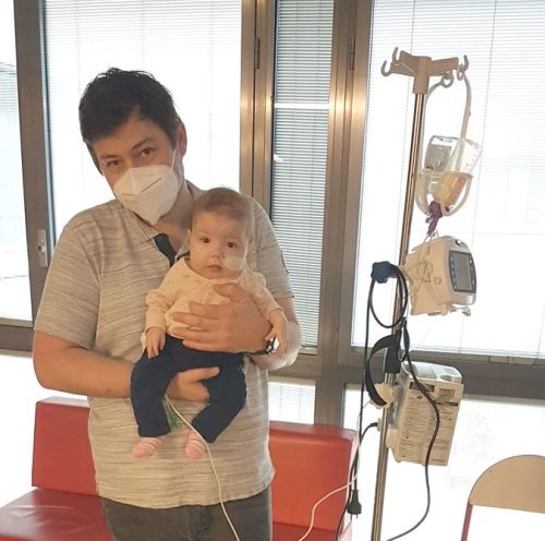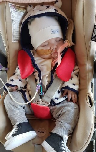 Do Prahy dojíždíme pravidelně každý měsíc na krevní testy do Thomayerovy nemocnice a na sonografii jater do IKEM. Ostatní lékařskou péči zajišťuje naše pediatrička, paní doktorka Ponížilová v Hrušovanech nad Jevišovkou ve spolupráci s Nemocnicí Znojmo. Nález v mozku způsobuje komplikace s motorikou pravé části těla, proto jezdíme každý týden do Znojma na rehabilitace, kde cvičíme Vojtovu metodu, a na pravidelné kontroly na neurologii.