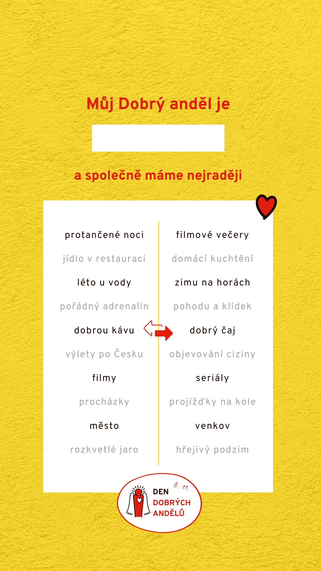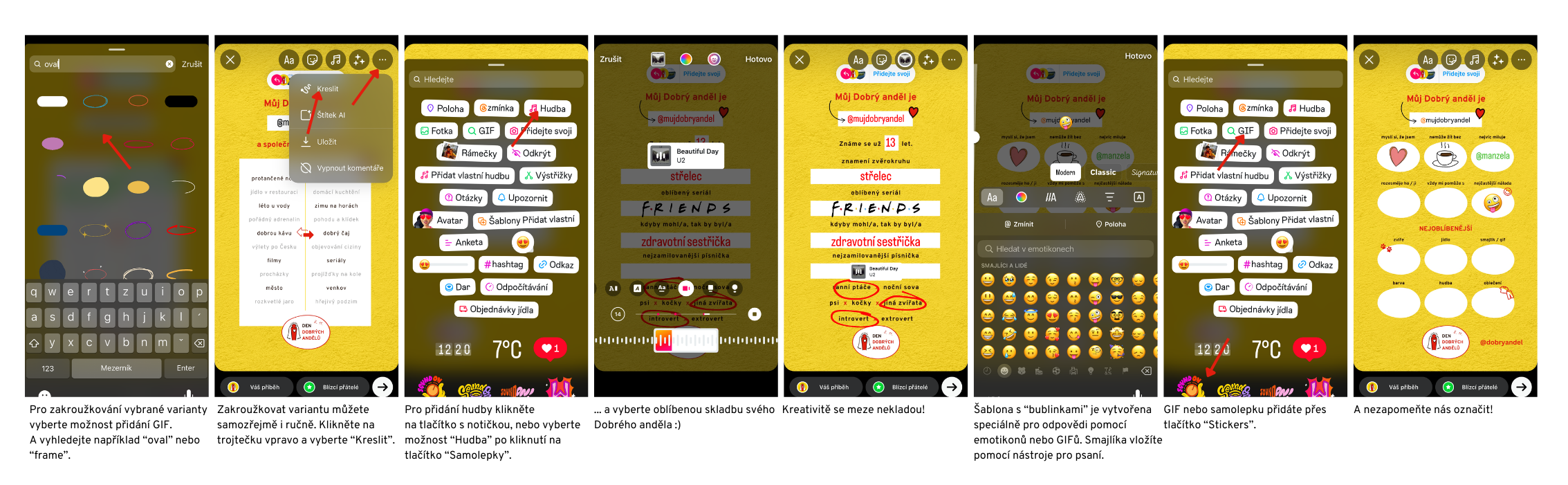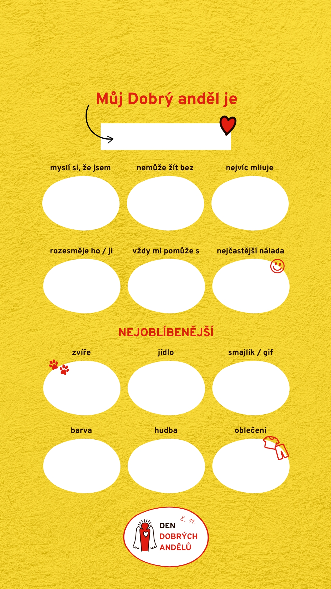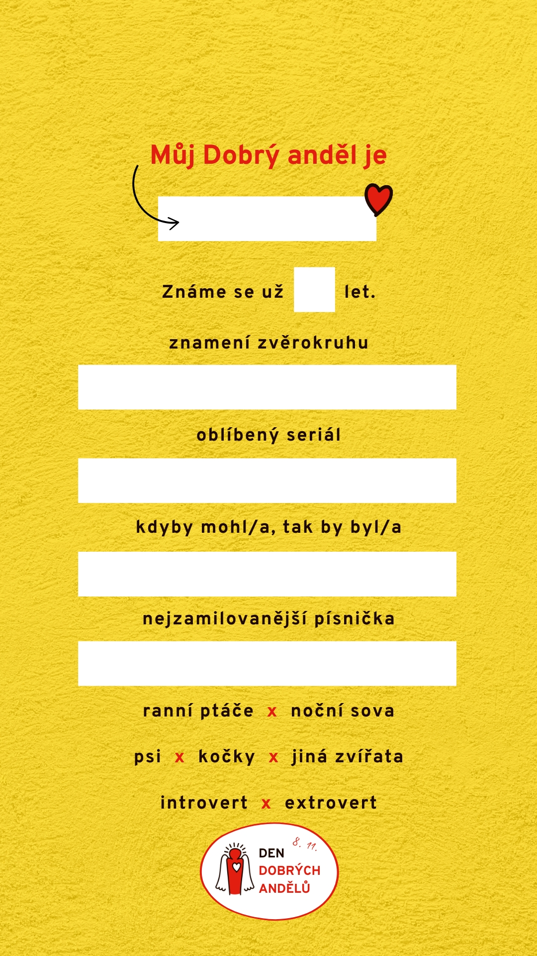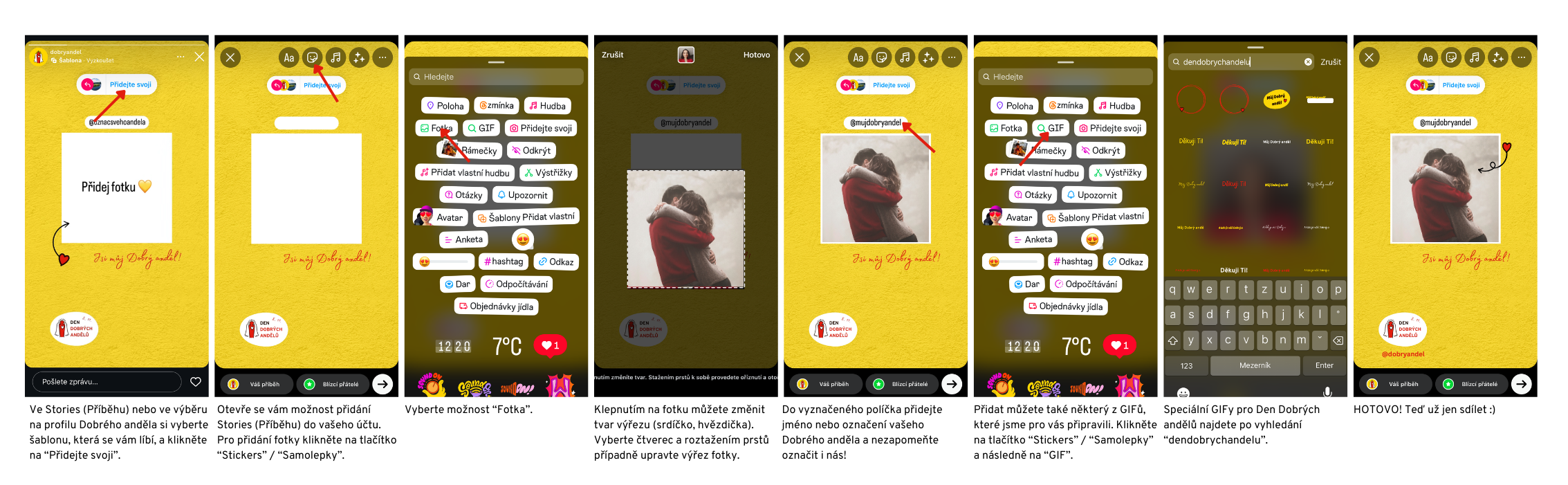 Poděkujte spolu s námi svým dobrým andělům nejen osobně, ale i na sociálních sítích – připraveny jsou pro vás tematické animované GIFy nebo šablony (jak je použít najdete v návodu níže). Nezapomeňte označit @dobryandel a použít hashtag #dendobrychandelu.