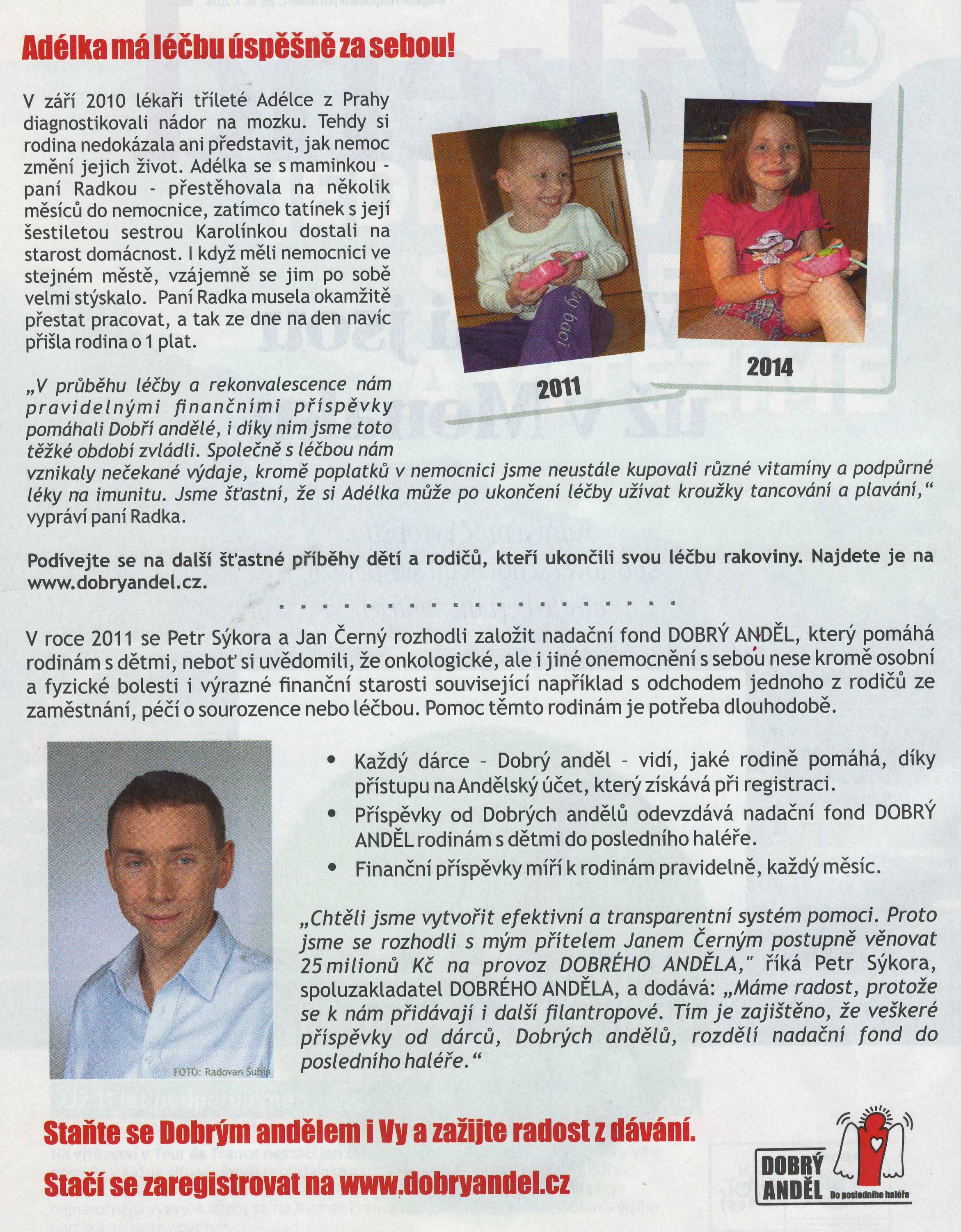 Účet Dobrých andělů pro zasílání příspěvků: 8001008/5500