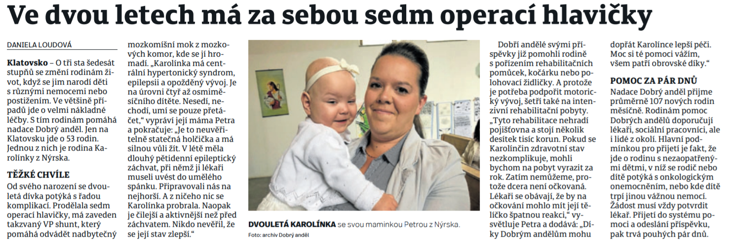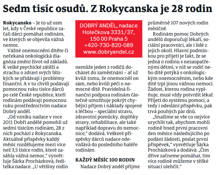 Účet Dobrých andělů pro zasílání příspěvků: 8001008/5500