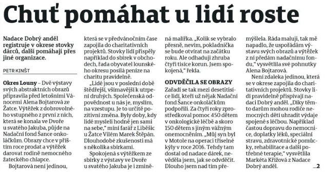 Účet Dobrých andělů pro zasílání příspěvků: 8001008/5500