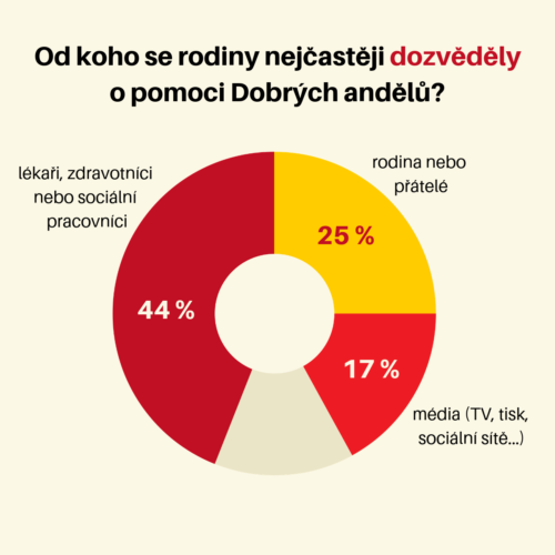 Veškerá data pochází z průzkumu provedeného nadací Dobrý anděl v květnu 2018 mezi 793 rodinami, které pečují o dítě s vážným onemocněním (mimo onkologického) a pomáhají jim Dobří andělé.